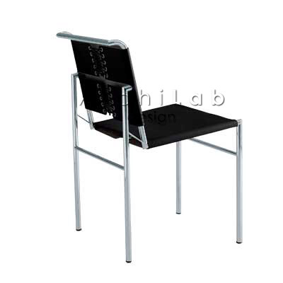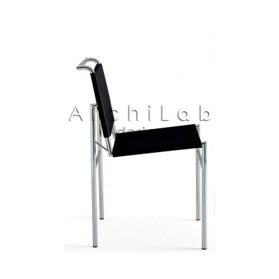 Chair with chromium-plated or painted frame. Hide leather covering.