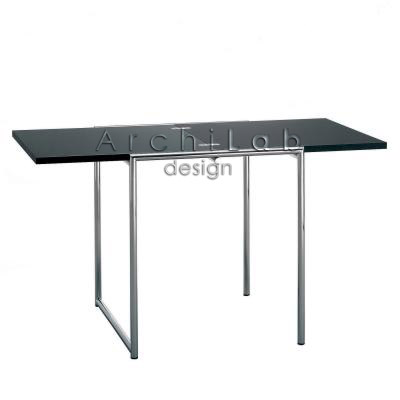 Designed by Eileen Gray. In the spring of 1922 while Eileen Gray was finishing the apartment on rue de Lota, she opened a showroom on rue du Faubourg St. Honoré to sell her work. For some reason, now unknown, this was called Jean Désert. This commercial venture sold carpets, lacquered furniture and Eileen Gray's designs of tubular furniture produced in small series. In 1930, this company was closed and she dedicated herself to Architecture. This table was one of those pieces designed for Jean Désert.